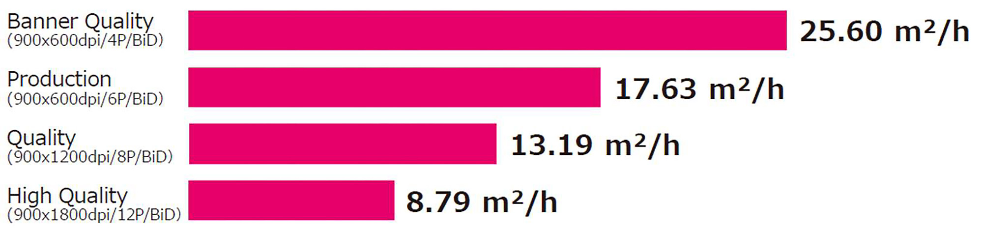 加えて、ロールメディアの残量をバーコードで管理できる「Media Tracker」機能により、メディアを効率よく使用でき、無駄を削減。また、正常に吐出するノズル範囲を選択して印刷できる「Nozzle Area Select」機能により、ノズル詰まりが発生した場合でも、ダウンタイムなしで印刷を継続できる。