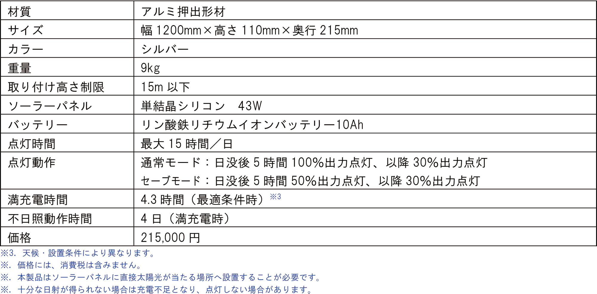 アドビューソーラーの仕様