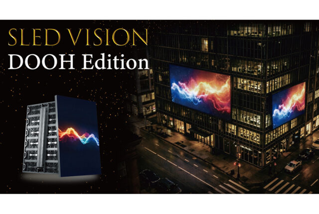 同製品は、屋外LEDビジョンシリーズ「SLED VISION(スレッドビジョン)」の新ラインアップとして、DOOH用途に特化して開発。消費電力を従来比で50%以上削減、重量も約50%軽量化しながら、屋外に必要な高輝度と視認性を確保し、省エネ・軽量・長寿命・景観配慮を同時に実現したとしている。
